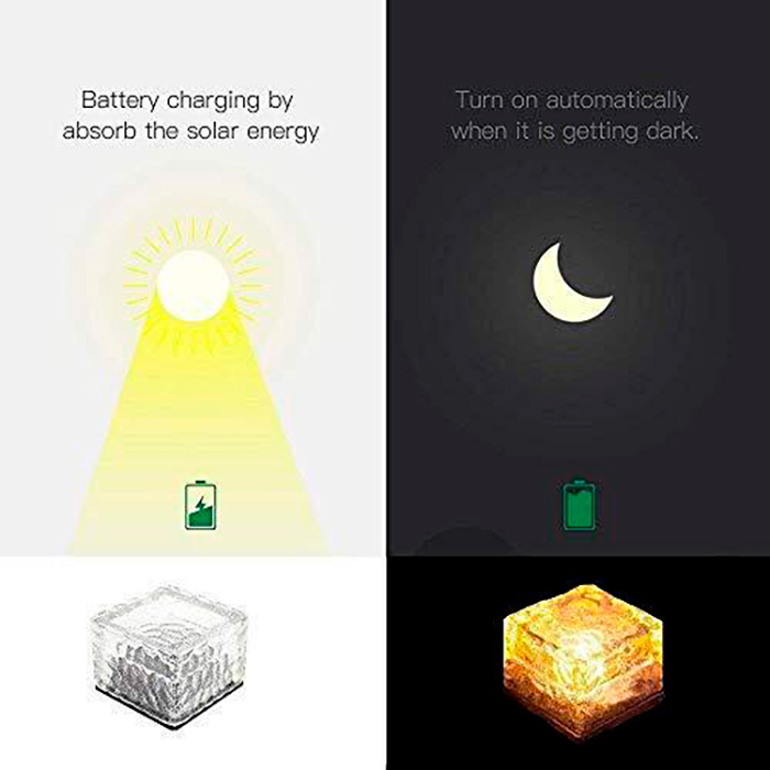 LED svjetlo zahtijeva 3 AAA baterije za rad. Svjetla se pune solarnom energijom. Svjetla rade automatski - upijaju dodatnu solarnu energiju tijekom dana i počinju svijetliti navečer. Na dnu lampe nalazi se i gumb kojim možete potpuno isključiti lampu kako biste uštedjeli energiju.